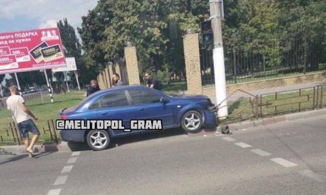 В Мелитополе водитель авто наехал на тротуар и врезался в столб (ФОТО)