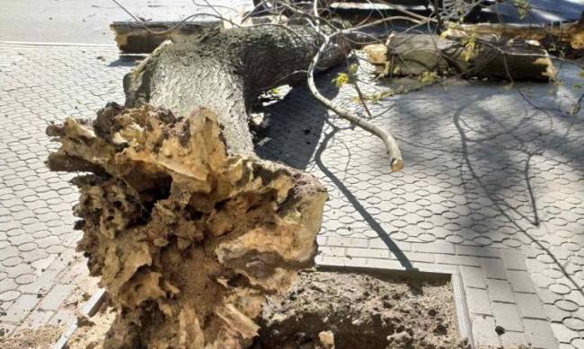 В центре Мелитополя рухнуло огромное дерево - ФОТО