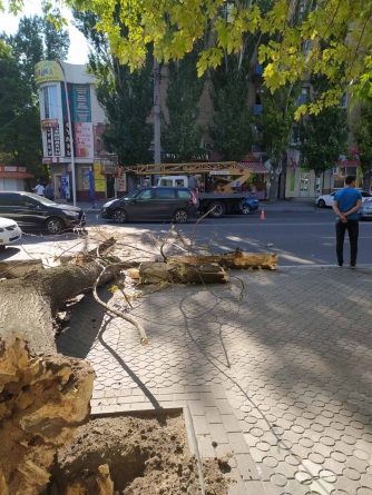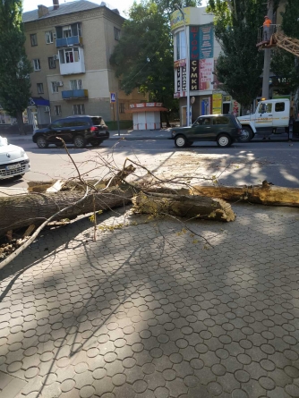 Сегодня днем в центре Мелитополя рухнуло огромное дерево.