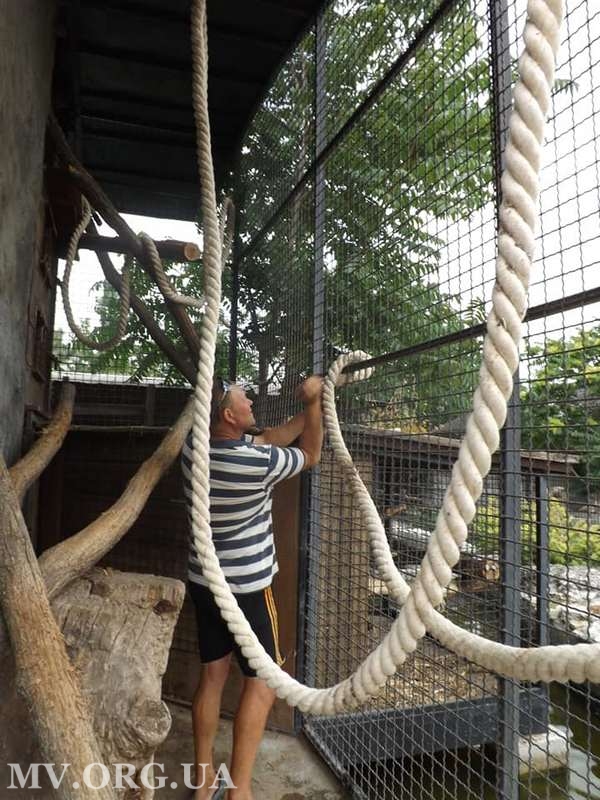 «А у нашего гамадрила Роса появились две подружки. Девчонки приехали к нам из Ровенского зоопарка. Они поселились в двухкомнатном просторном вольере вместе с Росом.⠀ Специально к переезду новоселов, вольер оборудовали многоуровневыми арками канатов. На них обезьянки бегают, раскачиваются и даже… лежат – в общем, весело проводят время.⠀ Наблюдать за тем, как эти павианы обустраивают свой дом, очень занимательно».