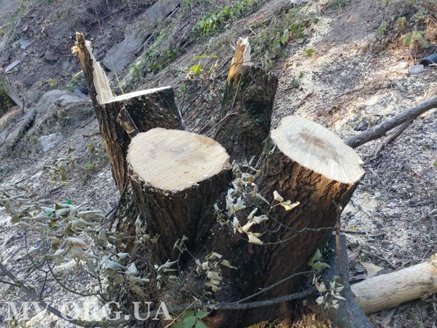 Под спил попали деревья по обе стороны трассы. При этом со стороны, которая относится к лесничеству, клейм последних о вырубке деревьев нет, что вероятно свидетельствует о незаконных действиях.