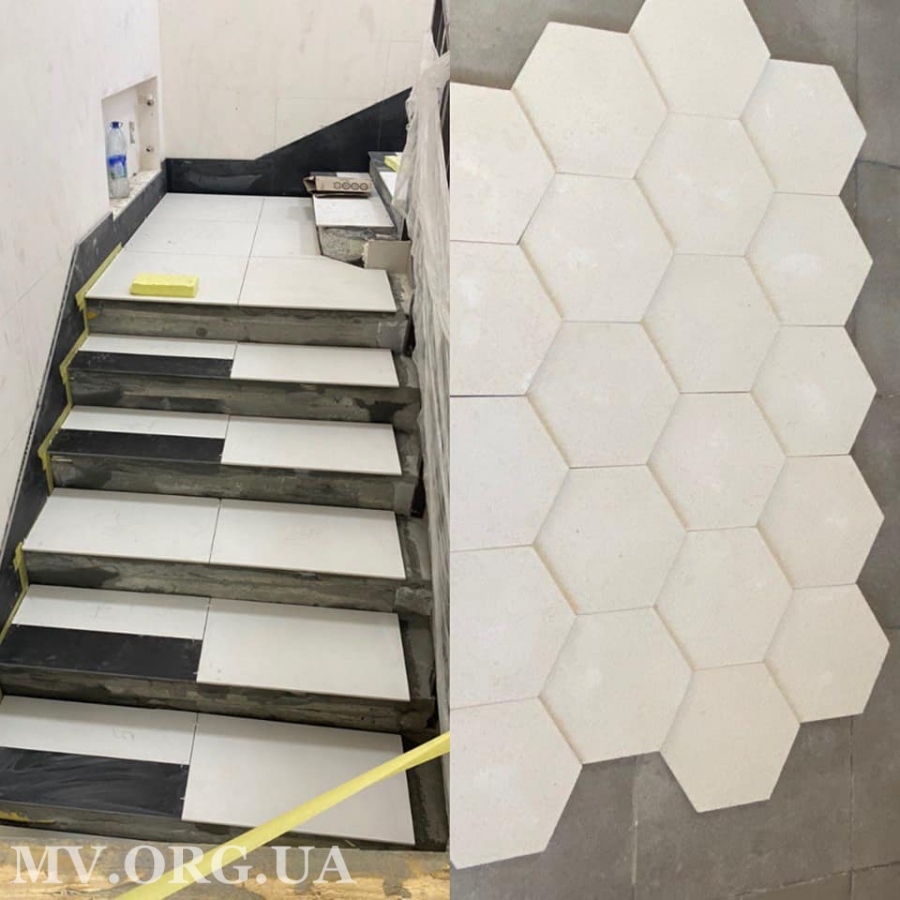 Ремонт музыкальной школы подходит к концу. Рабочие приступили к укладке плиткой территории вокруг учебного заведения.