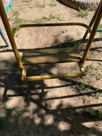 -На данный момент качели находятся в ужасном состоянии. Особенно это касается уже прогнившей горки.