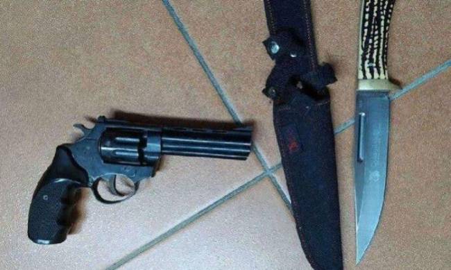 При обыске мужчины правоохранители обнаружили и изъяли револьвер и ножи.