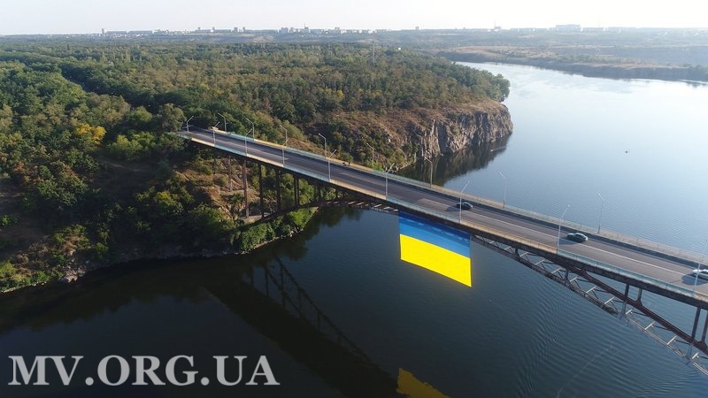Ко Дню государственного флага и Дню независимости Украины комбинат "Запорожсталь" компании Метинвест при содействии Запорожской облгосадминистрации вывесил над р. Днепр государственный флаг площадью 400 м 2 . Национальный символ разместили на Арочном мосту, соединяющем жилые массивы Запорожья с островом Хортица.