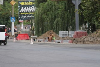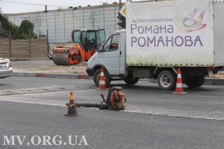 Дальше в сторону ул. Героев Украины еще ведутся дорожные работы, здесь еще доукладывают полосу асфальтного покрытия