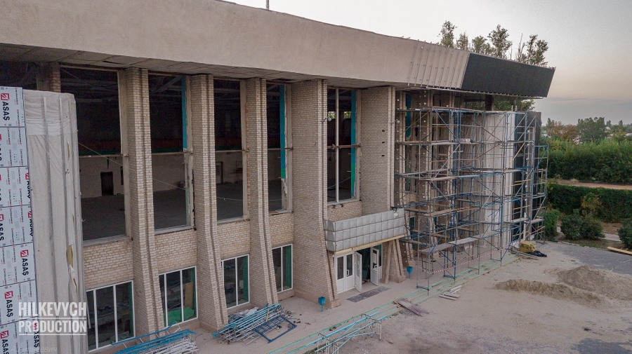 В Мелитополе продолжается масштабная реконструкция ДЮСШ №3. Рабочие приступили к ремонту фасада помещения.
