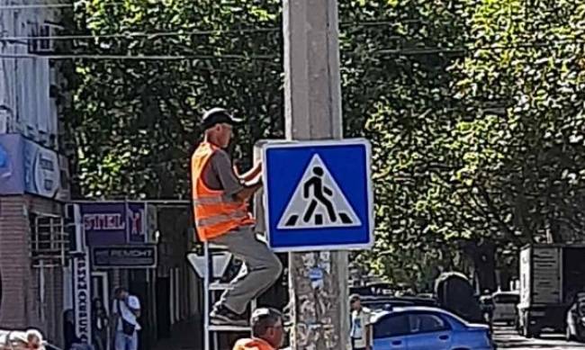В нижней части города устанавливают дорожные знаки (ФОТОФАКТ)