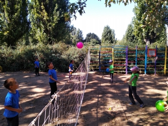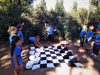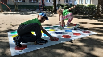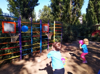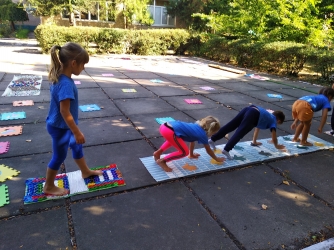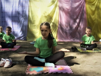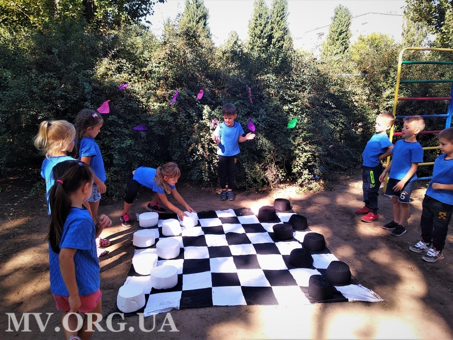 Малыши с азартом играли в баскетбол и волейбол, гигантские шахматы, занимались йогой и пр.