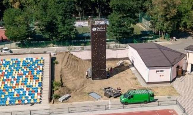 На минувшей неделе на стадионе в парке им. Горького установили скалодром. Уже ведутся работы по вводу его в эксплуатацию и совсем скоро мелитопольцы смогут покорить эту искусственную гору.