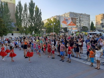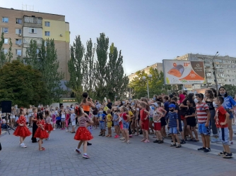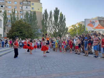 Основное действо яркого праздника еще не началось. Сейчас малышей, пришедших на праздник, учат красивым бальным танцам.
