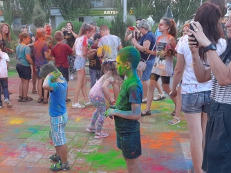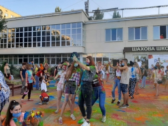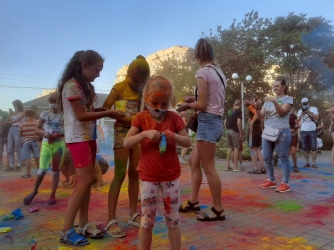 Сегодня на площади около Шахматной школы проходит фестиваль красок Холли.