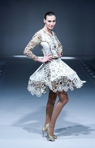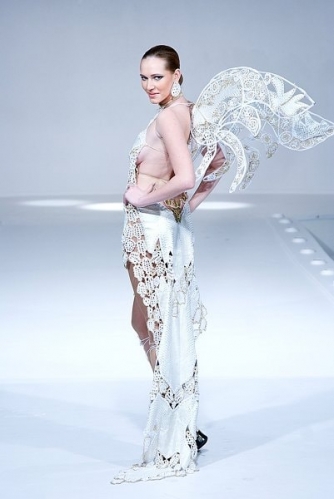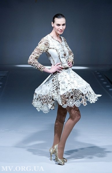 Мелитопольский дизайнер Оксана Маило создает необычные наряды – платья, костюмы жилетки, аксессуары из кожи и меха, обвязанные кружевами из нитей. Платья мастерицы и одеждой-то сложно назвать. Это скорее произведения искусства.