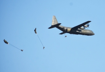 В Украине начались международные учения «Объединенные усилия - 2020». Первый этап военных маневров начался с высадки британских и украинских "крылатых пехотинцев" с военно-транспортных самолетов Воздушных Сил США и Украины.
