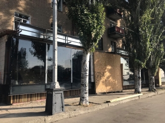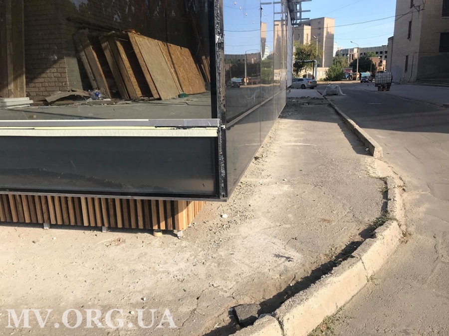 В этот раз отличился владелец помещений на углу возле ДК Шевченко. Он настолько расширил встроенные помещения, что от тротуара осталось всего ничего.