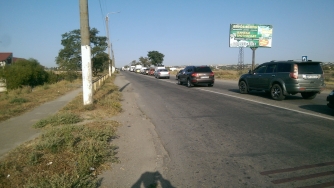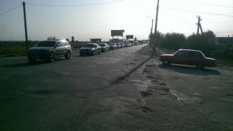 Там установлен знак «Стоп контроль». Работают представители полиции и Нацгвардии. Проверяются автомобили, их груз, документы водителей и т. д. Из-за этого образовалась многокилометровая пробка, которая тянется от поворота на с. Вознесенка, в с. Константиновка Мелитопольского района.