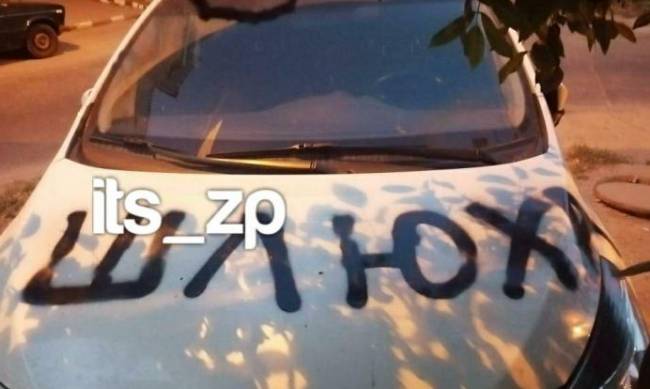 Отомстили: в Запорожье на Космосе девушке на автомобиле нарисовали непристойность