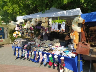 В основном в парке представлены фотозоны от различных заведений, но они не становятся от этого менее красивыми. Также сегодня в парке обилие художников и рукодельников - можно увидеть всевозможные подделки из бисера, вязанные куклы, картины акварелью и многое другое.