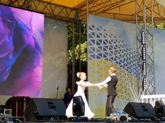 Об этом сообщили перед началом праздничного концерта в парке культуры и отдыха им. М. Горького. Погибших почтили минутой молчания, после чего концерт начался. Начали выступать коллективы ДК им. Т. Шевченко. Праздничная программа была ориентирована и на детей, и на взрослых.