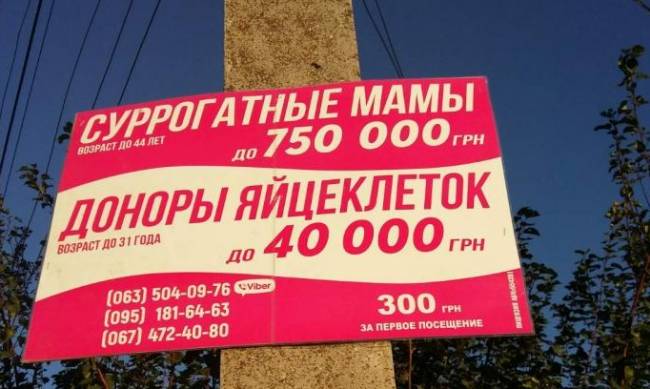 В с. Константиновка (Мелитопольский район) на столбах появились яркие объявления – местных женщин приглашают стать донорами яйцеклеток и суррогатными мамами, суля солидное вознаграждение. Аналогичные объявления появились и в Акимовском районе.