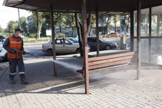 Каждый день коммунальщики обрабатывают дезинфицирующими средствами остановки, скамейки в скверах и общественный транспорт.