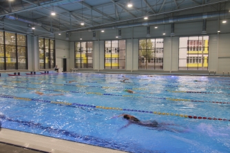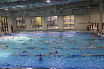 Стартовал он в недавно открытом бассейне, где спортсмены соревновались в плавании на 800 метров.