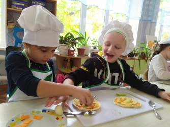 Особый интерес у детворы вызвал кулинарный этап фестиваля «Мастер-шеф», ведь они смогли ненадолго превратиться в настоящих шеф-поваров и вместе с воспитателями приготовить вкусные и полезные блюда из тыквы. Каждая группа создавала свое блюдо: так ребята средних групп приготовили тыквенный витаминный салат и запеченные яблоки с творогом и тыквой. А старшие дошкольники удивляли всех своими тыквенными слойками, сладкой пиццей и тыквенными рулетиками из лаваша.