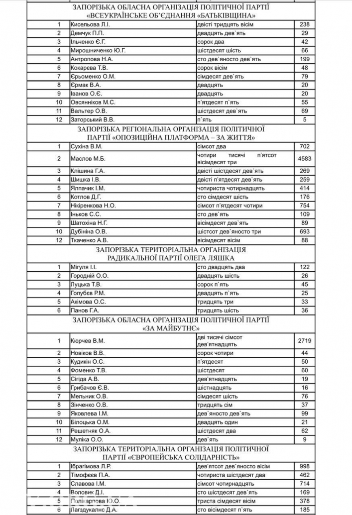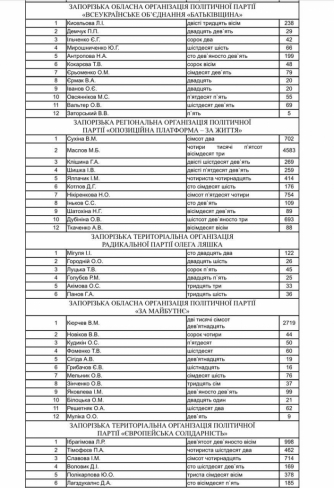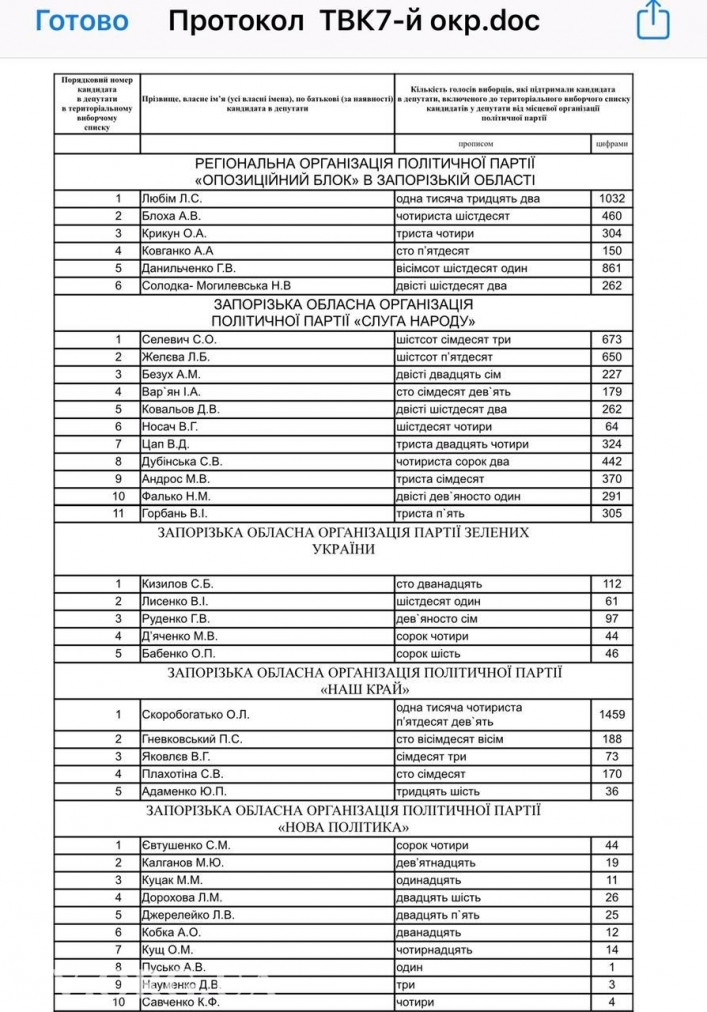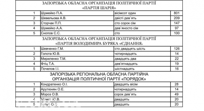 Так, по итогам голосования в Запорожский областной совет от Мелитополя могут пройти: Михаил Маслов (ОПЗЖ), Владимир Кюрчев ("За Майбутнє"), Людмила Любим ( Оппоблок), Сергей Селевич ("Слуга народа"), Лейла Ибрагимова ( ЕС).
