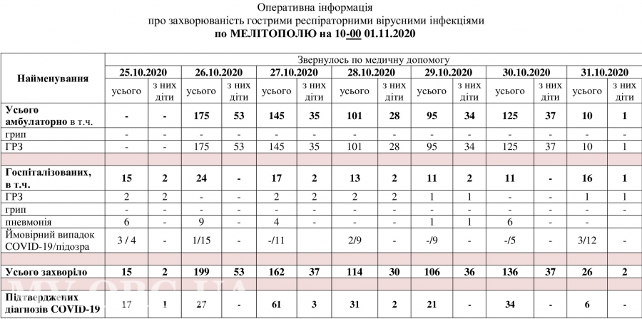 Всего на лечении находятся 1074 мелитопольца с COVID-19, из них 47 детей: