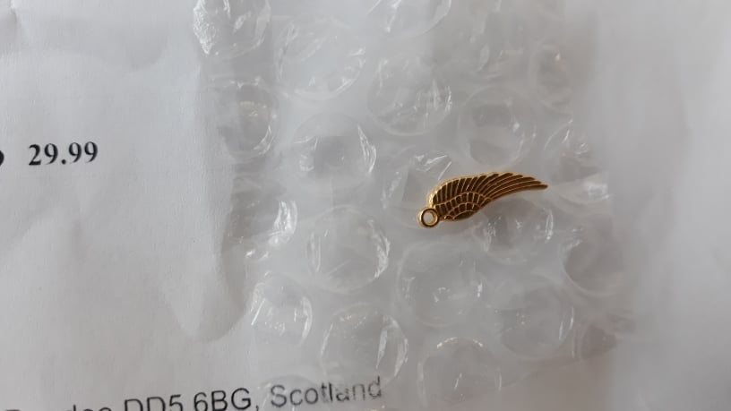 Внутри пакетика оказался кулон, который с виду напоминал золотой, но на деле оказался пластиковым.