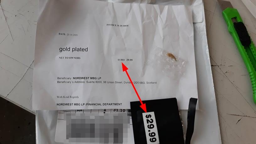 "Подъехал на отделение, чтобы посмотреть, что же в посылке... Так как это была наложка, разрешили осмотреть посылку. Внутри был листик и герметичный пакетик, на котором был стикер 29,99 долл., в бумажке же было 29,99 евро", - пишет украинец, который едва не стал жертвой "лохотрона".