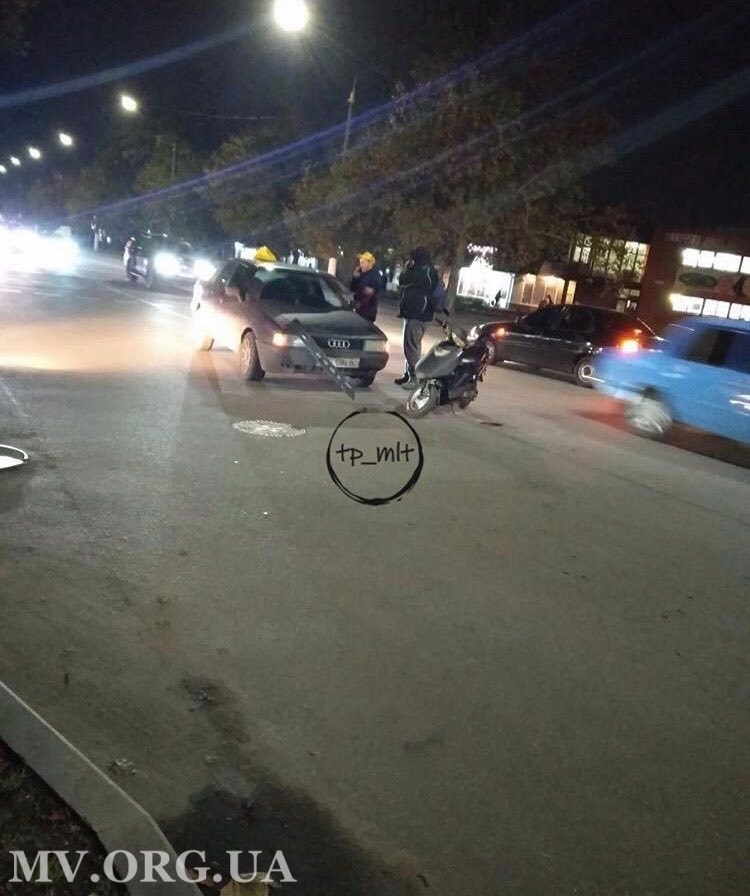 Около 18:00 на перекрестке проспекта 50-летия Победы и улицы Гоголя в Мелитополе произошло ДТП. В районе остановки общественного транспорта "Детсад" скутерист попал под колеса автомобиля "Ауди".