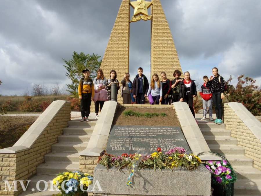 Накануне празднования Дня освобождения Мелитополя воспитанники кружков «Историки-краеведы» и «Экологи-краеведы» (руководитель Александр Рогаль) отправились в однодневный поход. Ребята побывали на блиндаже, в котором в сентябре-октябре 1943 года располагались командные пункты 463 полка 118-й стрелковой дивизии и 117-го артиллерийского полка Южного фронта, возложили цветы у мемориала памяти на месте прорыва немецкой линии обороны "Вотан", посетили блиндаж у села Садового. Во время похода дети не только познакомились с хронологией и историей событий 1943 года, но и сделали доброе дело - вместе с руководителем кружка привели в порядок заброшенный мемориал перед блиндажом.