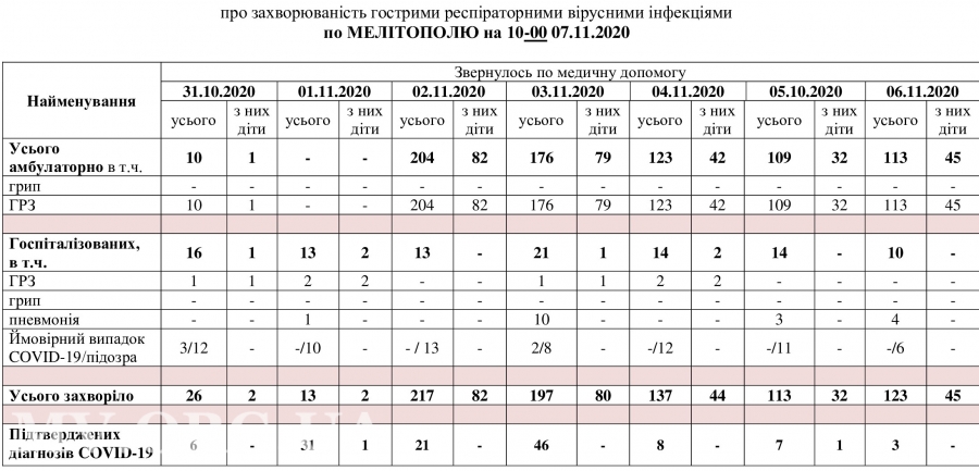 Всего на лечении находятся 1038 мелитопольцев с COVID-19, из них 44 ребенка: