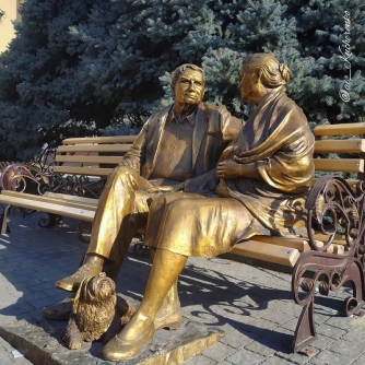 Также композицию дополнил домашний любимчик – пудель, который лежит у их ног. При этом собаку воровали три раза, но после последнего раза его восстанавливать не стали. Более того, скульптуру уже несколько раз обрисовывали вандалы.
