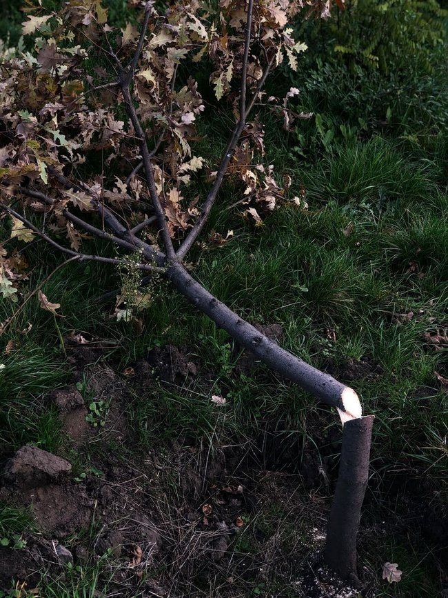 Вандалы вырубили молодые деревья в центральном парке Запорожья, а власти закрывают на это глаза.