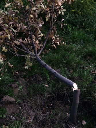 Вандалы вырубили молодые деревья в центральном парке Запорожья