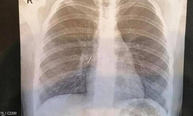 Маленькую пациентку скорой из Ходоровской городской больницы госпитализировали во Львов. Ребенку сделали рентген-снимок и слова пациентки об инородном теле в бронхах подтвердились - на снимке был четко виден гвоздь.