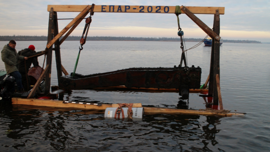 В Запорожье представили уникальную гидроархеологического находку, которую обнаружили на дне р. Днепр - дубовый лафет.