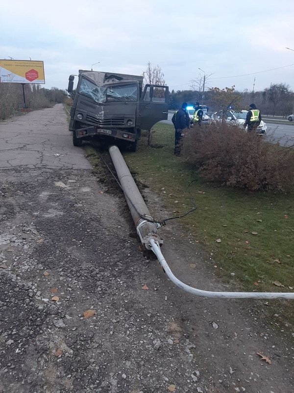ДТП вчера днем произошло на Набережной магистрали в Запорожье. Здесь грузовой автомобиль сбил столб.