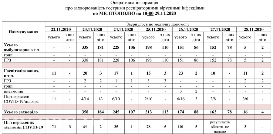 - 94 с подтвержденным диагнозом COVID-19 (70 мелитопольцев и 24 сельских жителей),