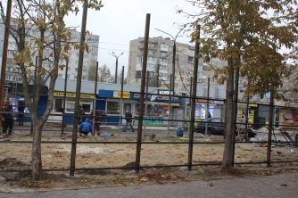 Вчера же, неожиданно для жильцов дома № 48 началось строительство. Правда, вместо семи ларьков, там строят один большой павильон. Что там будет, не известно, но граждане не довольны. Говорят, нарушения норм безопасности налицо. Документов, разрешающих строительство, никто не показывает. Полицию вызывали уже два раза, правоохранители на вызовы приезжали, опрашивали строителей, жильцов и уезжали. Собственно, давать оценку законности строительства не в их компетенции.