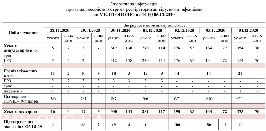 В горздраве сообщают о 11 новых случаях коронавирусной инфекции у жителей Мелитополя. Это результаты лабораторных исследований 1-3 декабря.