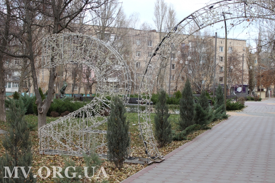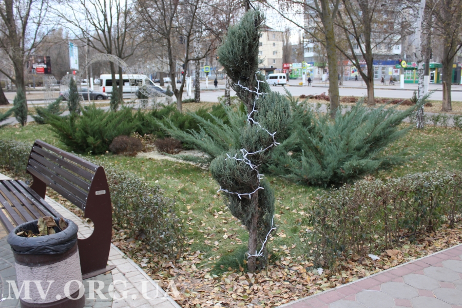 Сотрудники КП «Горсвет» продолжают украшать Мелитополь к новогодним праздникам. Сквер «Дружбы народов» на микрорайоне уже почти готов – не хватает только праздничной елки.