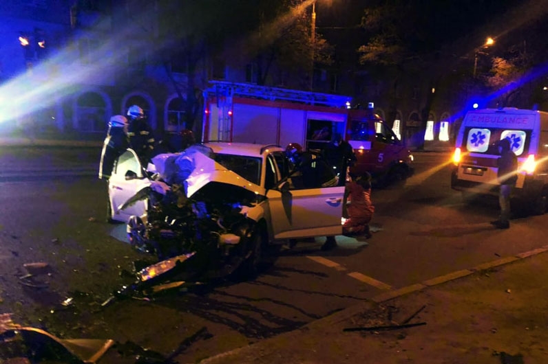Авария произошла около 04:08 понедельника, 7 декабря, на проспекте Богдана Хмельницкого. Сообщается, что на момент ДТП в салоне авто находились два человека - пассажир и водитель, девушка 1985 года рождения.