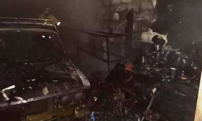 Прибыв на место происшествия, спасатели установили, что в гараже горят домашние вещи, конструкции перекрытия и частично моторный отсек легкового автомобиля «ВАЗ 2106» на общей площади 20 кв.м.