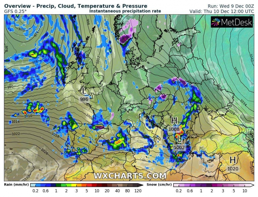 Погода в Украине в четверг, 10 декабря, будет обусловлена борьбой восточного антициклона и западных циклонов. В страну придет потепление на большинство территорий, но вместе с "повышением градуса" ворвутся мощные штормовые осадки - мокрый снег, дождь и сильный ветер.