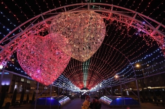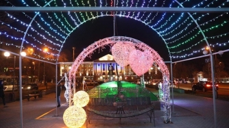 Каждая арка на бульваре Шевченко состоит из 20 конструкций с яркими гирляндами. Одна арка сияет желто-белым цветом, у другой – больший спектр и она постоянно меняет цвета.