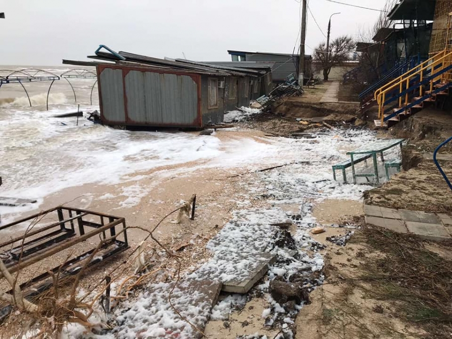 Напомним, на днях курортную Кирилловку обрушился шторм. В результате непогода были затоплены десятки баз отдыха на Федотовой косе.