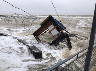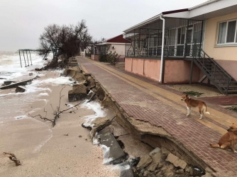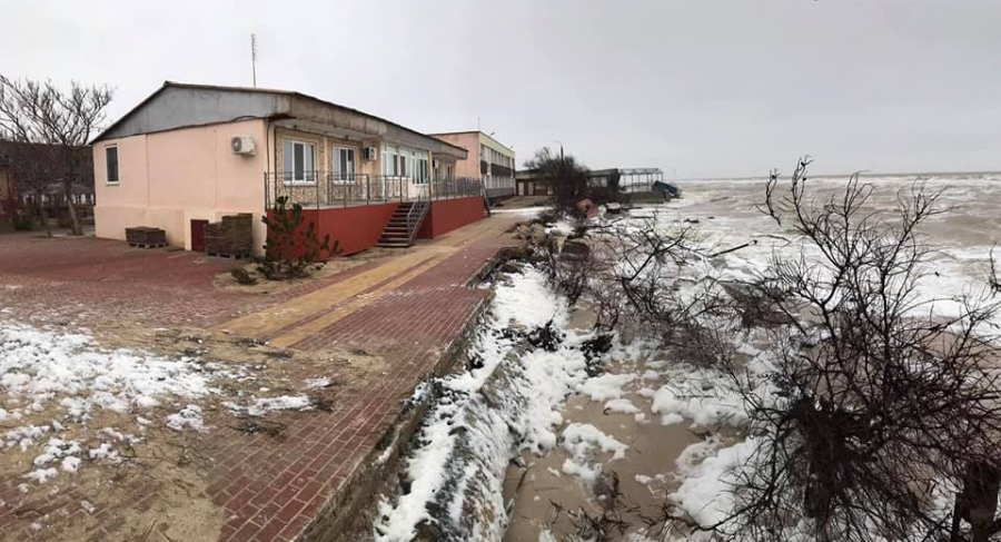 Из-за сильного шторма пляжи размыло. Базы отдыха и сейчас стоят в воде.